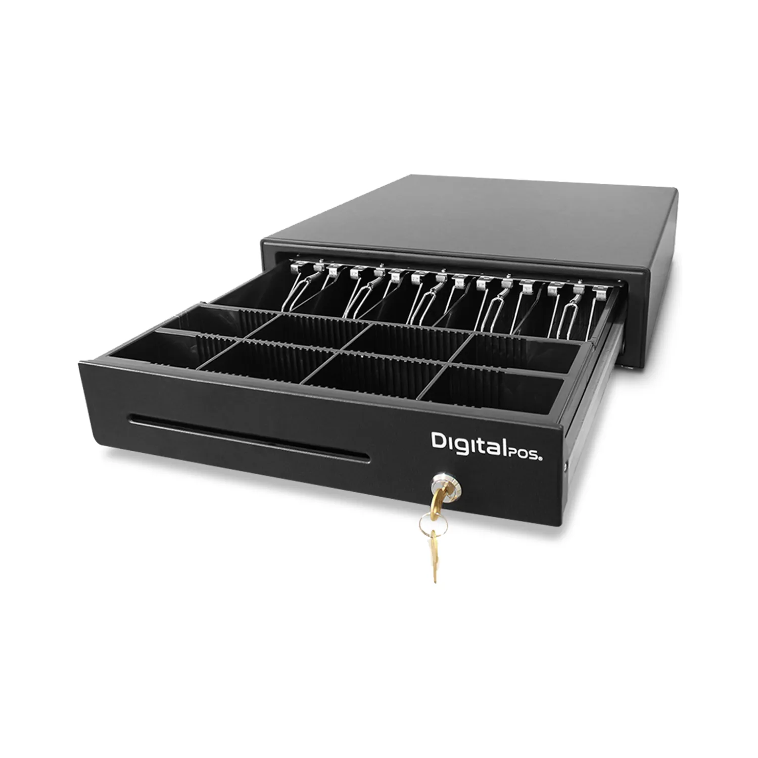 Optimiza tus operaciones de caja con el Cajón Monedero Digital POS DIG-4101. Con diseño compacto (410x420x100 mm), alta durabilidad y fácil integración con sistemas POS. Ideal para comercios modernos.