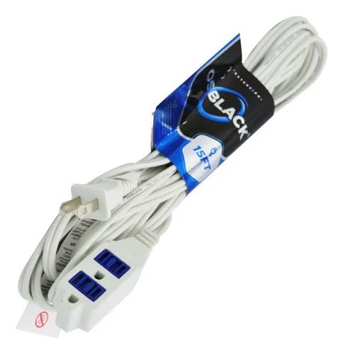 Extensión eléctrica de 3 metros con 3 tomas de conexión. Cable en PVC de alta resistencia, soporta hasta 125V y 1650W. Ideal para uso doméstico y oficina, brindando seguridad y practicidad en espacios reducidos.