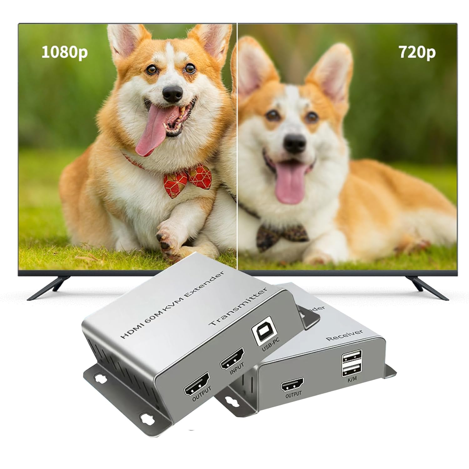 Extender HDMI 60M KVM 1080P con Control USB y Loop-Out