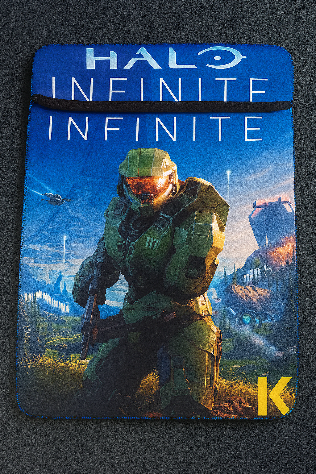Esta funda ofrece protección confiable con un estilo gamer llamativo. Su construcción en neopreno acolchado amortigua impactos, mientras que su diseño ajustado permite llevarla sola o dentro de mochilas. El arte de Halo Infinite la convierte en el accesorio ideal para fans y gamers que buscan funcionalidad con personalidad.