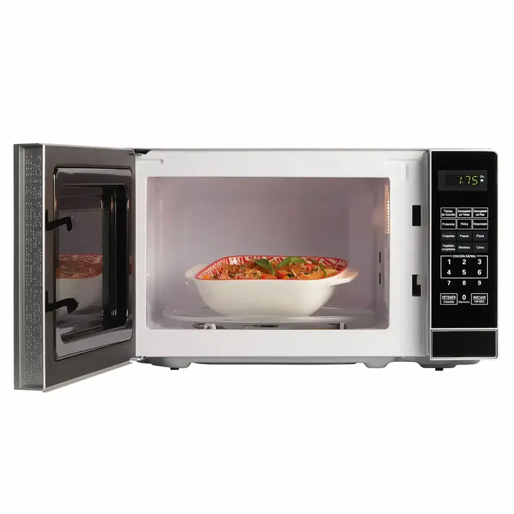Puedes calentar comidas, cocinar platillos sencillos, descongelar ingredientes y usar comandos automáticos para pizza, vegetales, bebidas, etc.