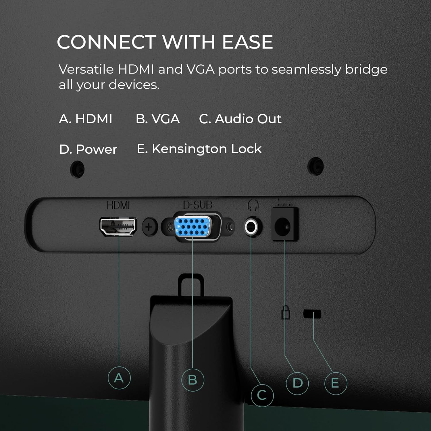 - Compatible con montaje VESA 75×75 mm.