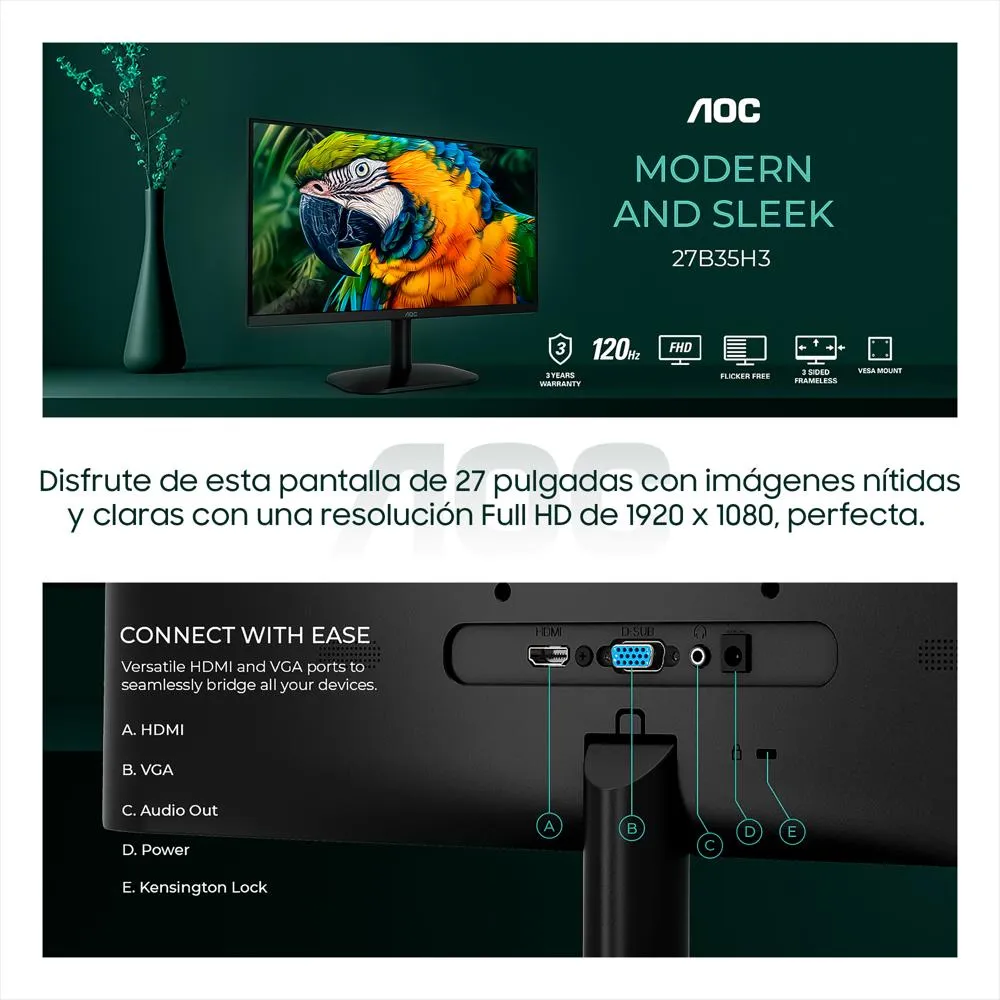 Monitor AOC 27B35H3 27″ Full HD 120Hz 1ms HDMI VGA Panel IPS Gaming